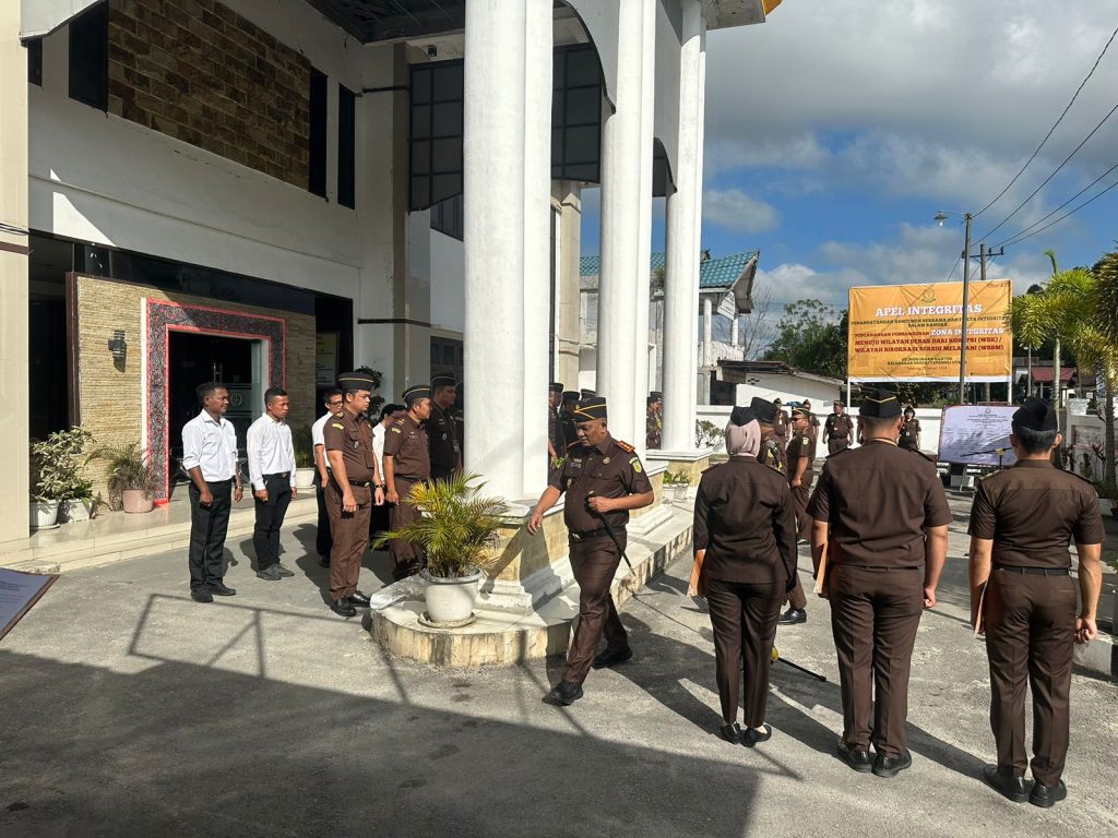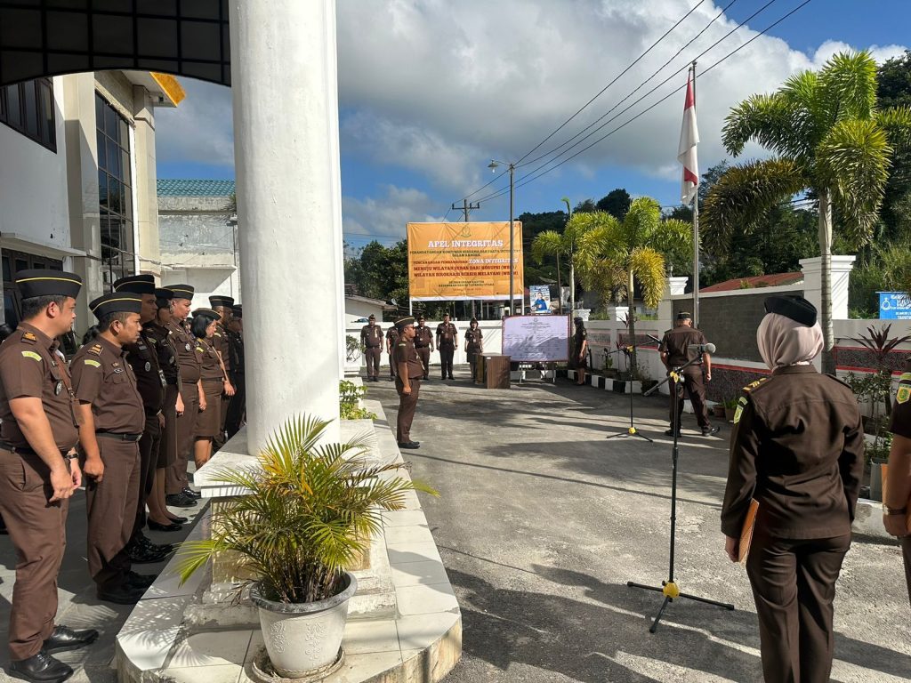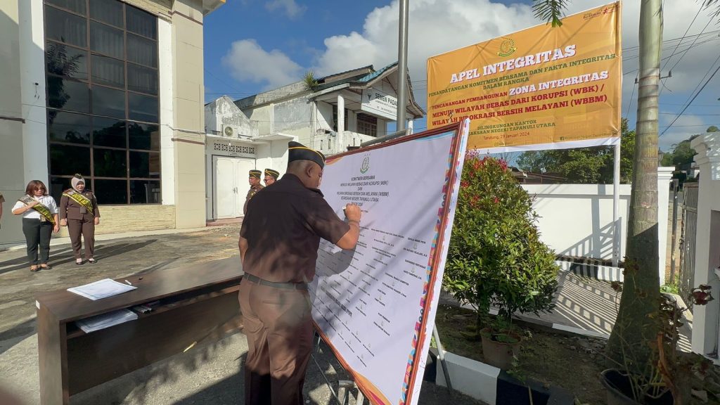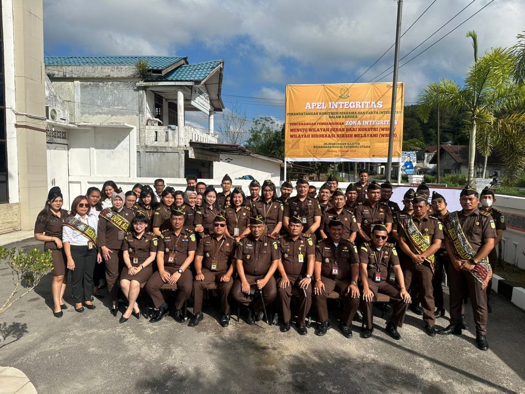 telah dilaksanakan Apel Integritas Penandatanganan Komitmen dan Pakta Integritas Dalam Rangka Pencanangan Pembangunan Zona Integritas Menuju WBK dan WBBM di Lingkungan Kantor Kejaksaan Negeri Tapanuli Utara bertempat di Halaman Kantor Kejaksaan Negeri Tapanuli Utara Jl Mayjend J Samosir Kecamatan Tarutung Kabupaten Tapanuli Utara.Bahwa Apel Integritas Penandatanganan Komitmen dan Pakta Integritas Dalam Rangka Pencanangan Pembangunan Zona Integritas Menuju WBK dan WBBM di Lingkungan Kantor Kejaksaan Negeri Tapanuli Utara dipimpin oleh Kepala Kejaksaan Negeri Tapanuli Utara dan diikuti oleh Kasubagbin, Seluruh Kepala Seksi, dan seluruh Jaksa serta seluruh Pegawai Kejaksaan Negeri Tapanuli Utara. Bahwa Pukul 09.10 wib Apel Integritas Penandatanganan Komitmen dan Pakta Integritas Dalam Rangka Pencanangan Pembangunan Zona Integritas Menuju WBK dan WBBM di Lingkungan Kantor Kejaksaan Negeri Tapanuli Utara telah selesai dilaksanakan dengan aman dan lancar.