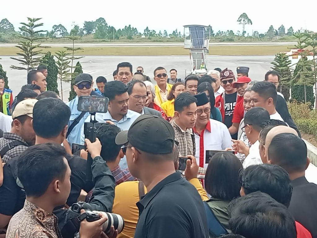 Kedatangan Gibran Rakabuming wali Kota Solo ( Cawapres no Urut 2) di Bandara Sisingamangaraja XII Silangit Wil Kab. Tapanuli Utara.