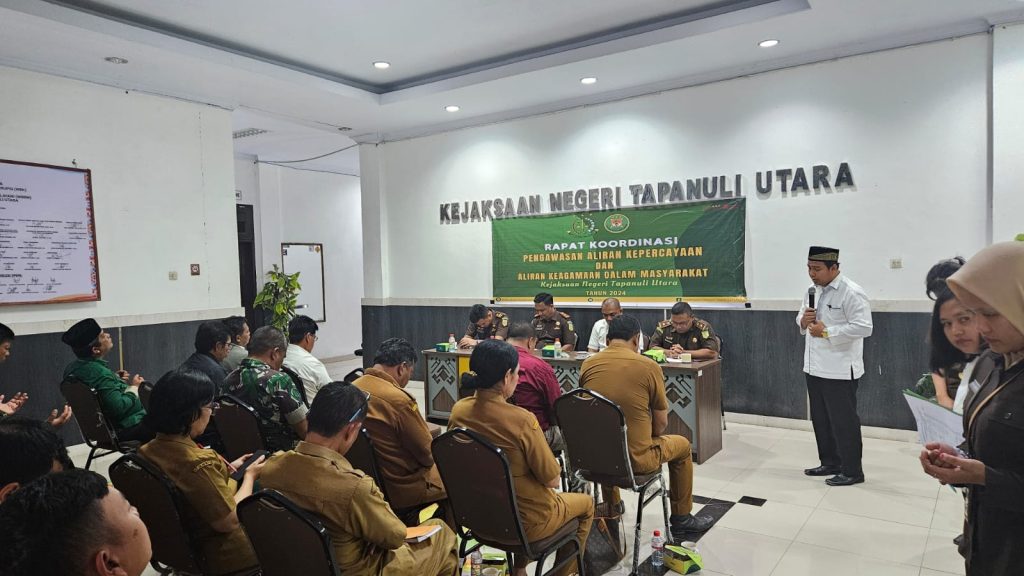 Telah dilaksanakan rapat koordinasi pengawasan aliran kepercayaan dan aliran keagamaan dalam masyarakat, tujuannya untuk melakukan deteksi dini yg berpotensi terganggunya keamanan dan ketertiban kemudian forum ini melibatkan semua instansi. melalui forum ini kita juga bertanggung jawab untuk memelihara keamanan dan kelancaran pada saat pemilu. Bahwa rapat koordinasi selesai dalam keadaan aman dan lancar.